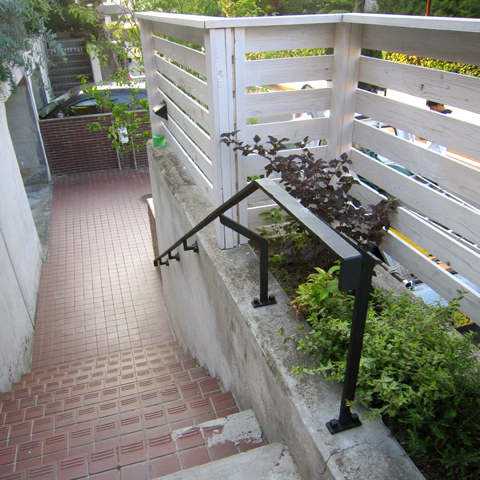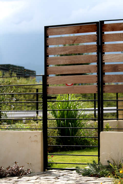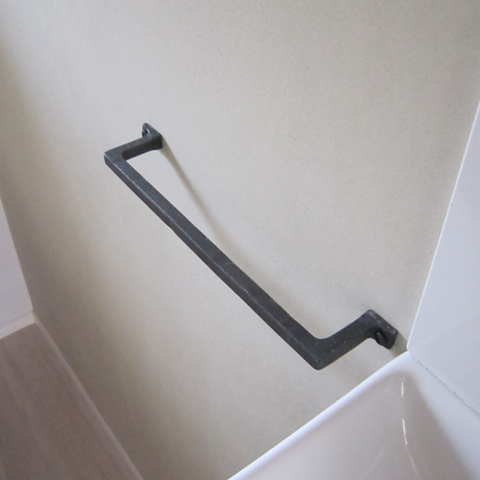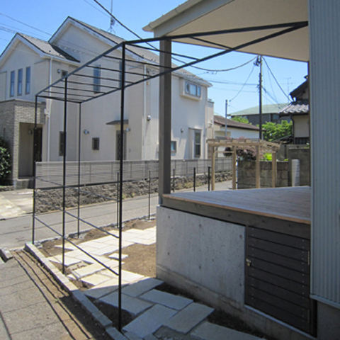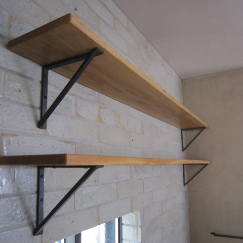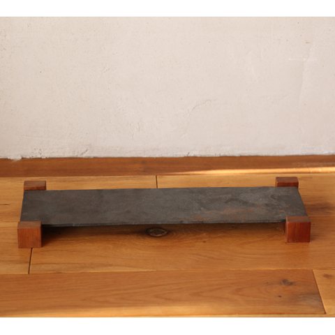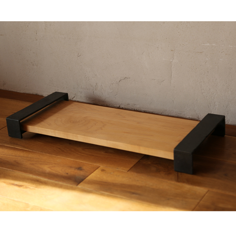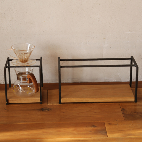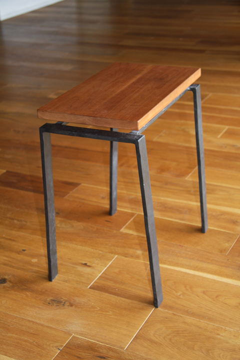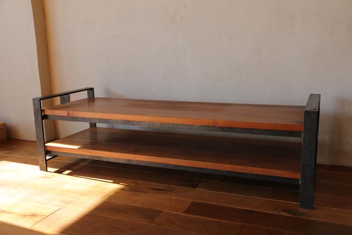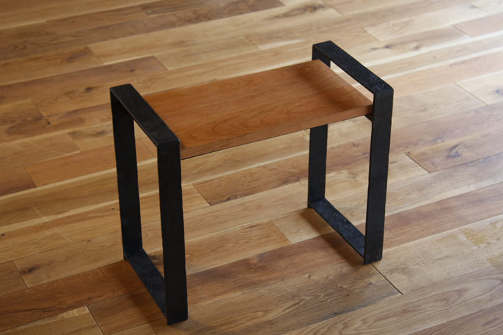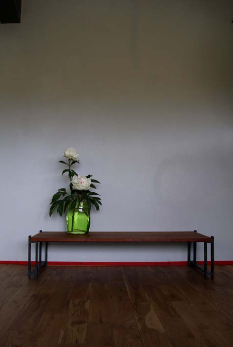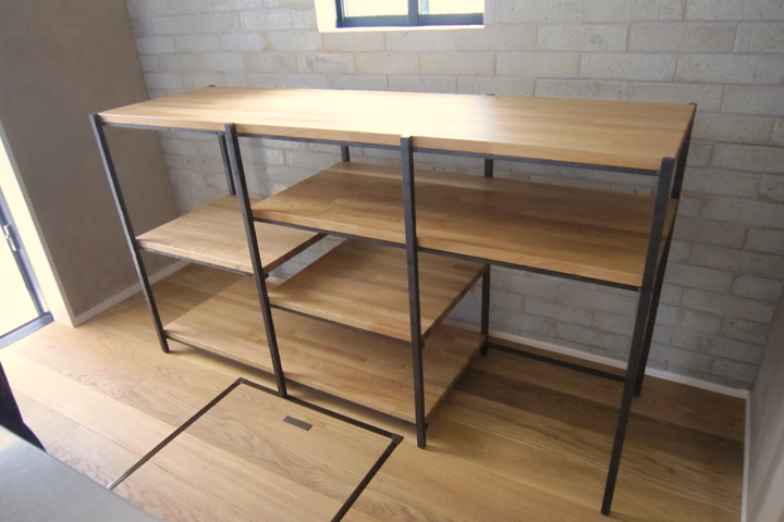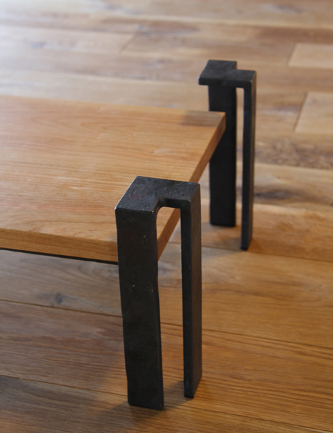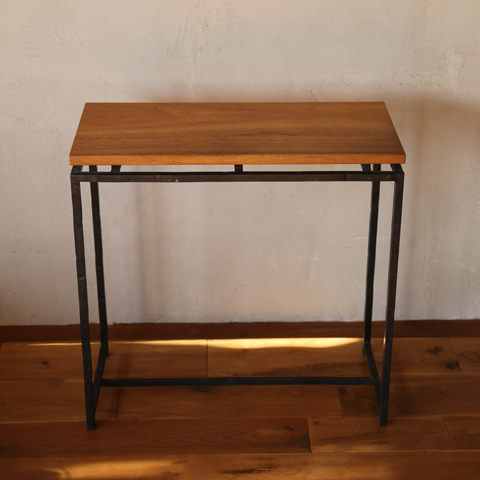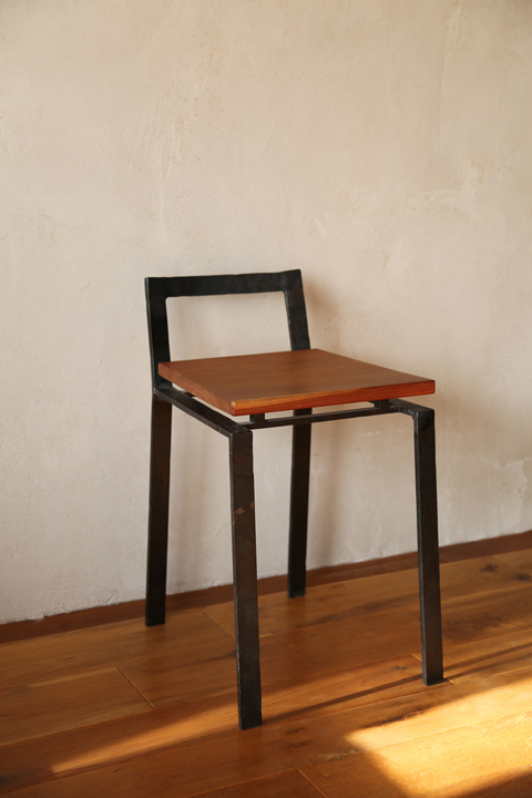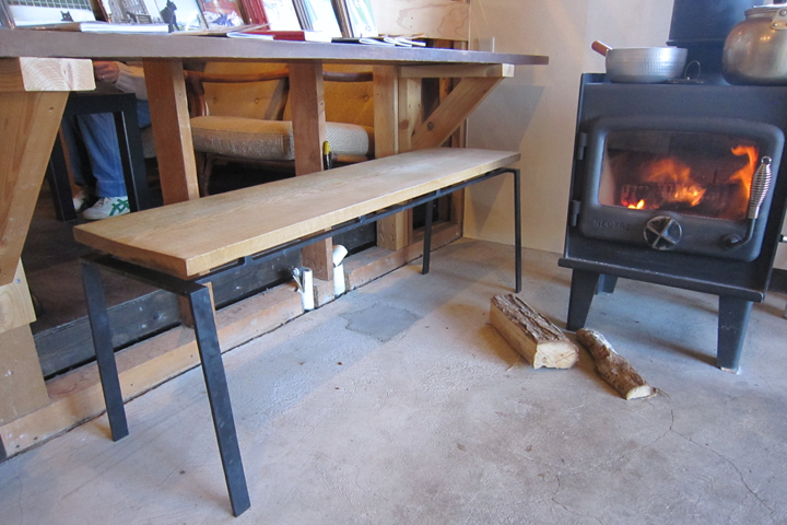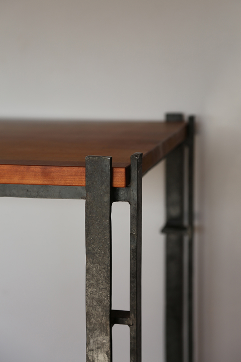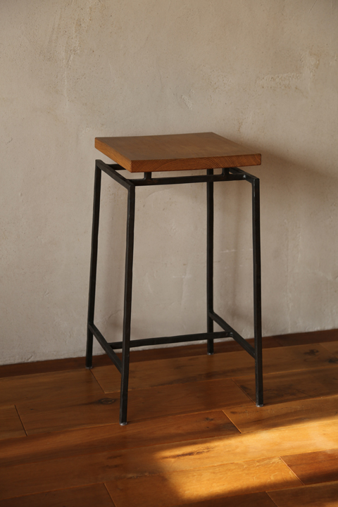 脚は無垢鉄25mmの角棒で制作。天板は無垢オーク材。